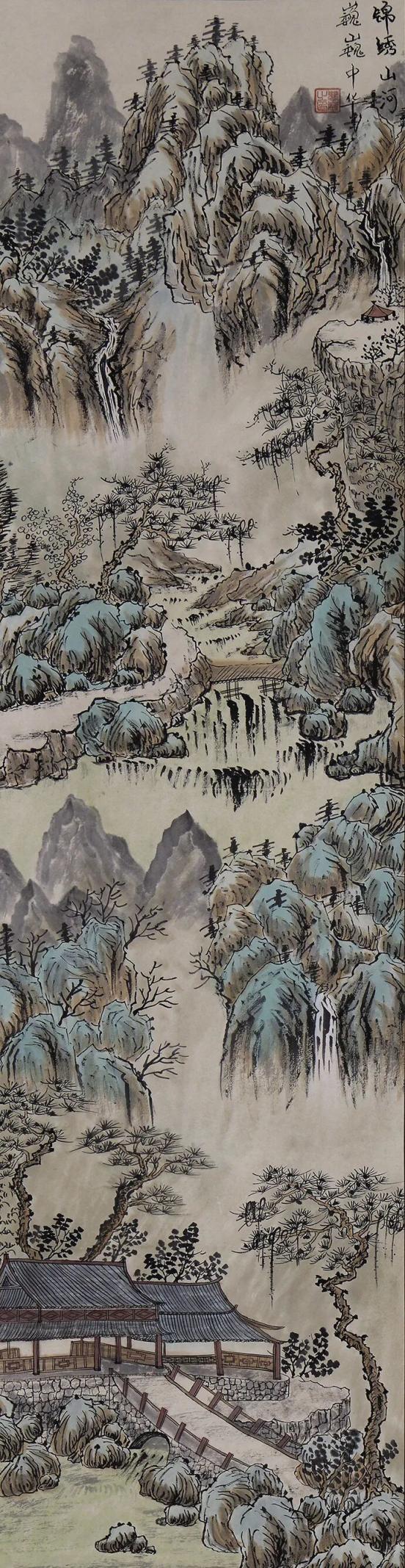 作品以青绿山水为基底,灵感源自中华大地的壮阔疆域与千年廉政文化传承。以苍劲笔触勾勒层峦叠嶂,用澄澈青绿色调绘就山河生机,暗喻“清廉则山河固”的深刻内涵。画面中山石挺拔不阿,象征坚守初心、刚正不阿;流水澄澈通透,寓意政务公开、清正廉洁;作品突出社区工作扎根群众、服务为民的本质,传递出以廉洁之风守护山河无恙、以务实之举践行民生承诺的价值导向。