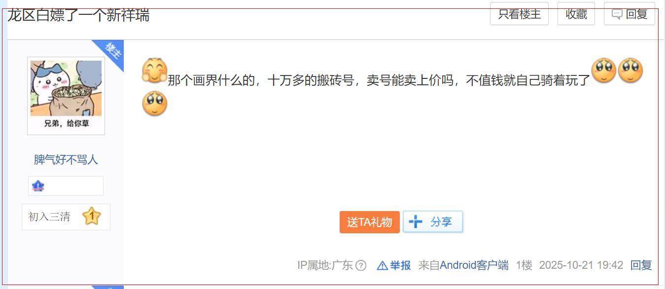 在意外获得这笔“天降之财”后,上述大学生也第一时间询问网友,自己接下来该怎么做?有人建议他直接共号按次收费,毕竟目前《逆水寒》中不少人拍摄“大宋映画”会来租,也有的网友建议他直接出号,按市价估算应该能卖个一万多!