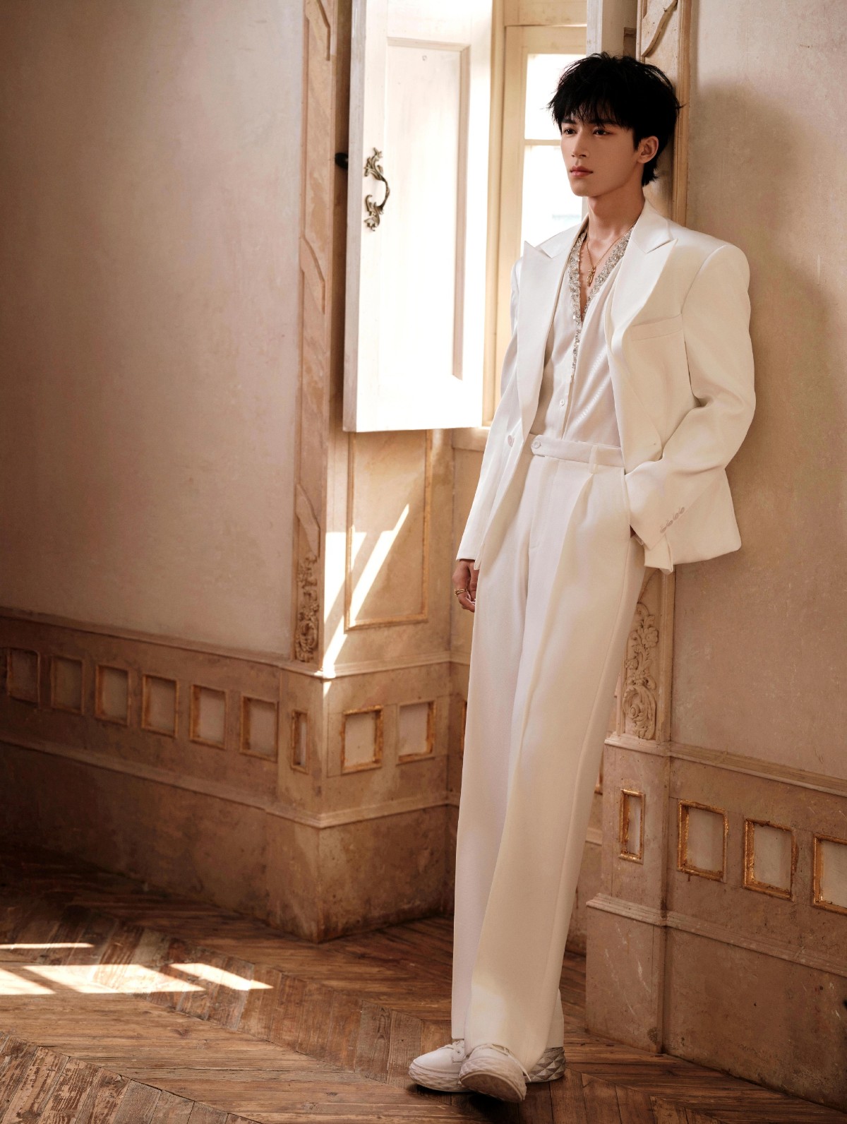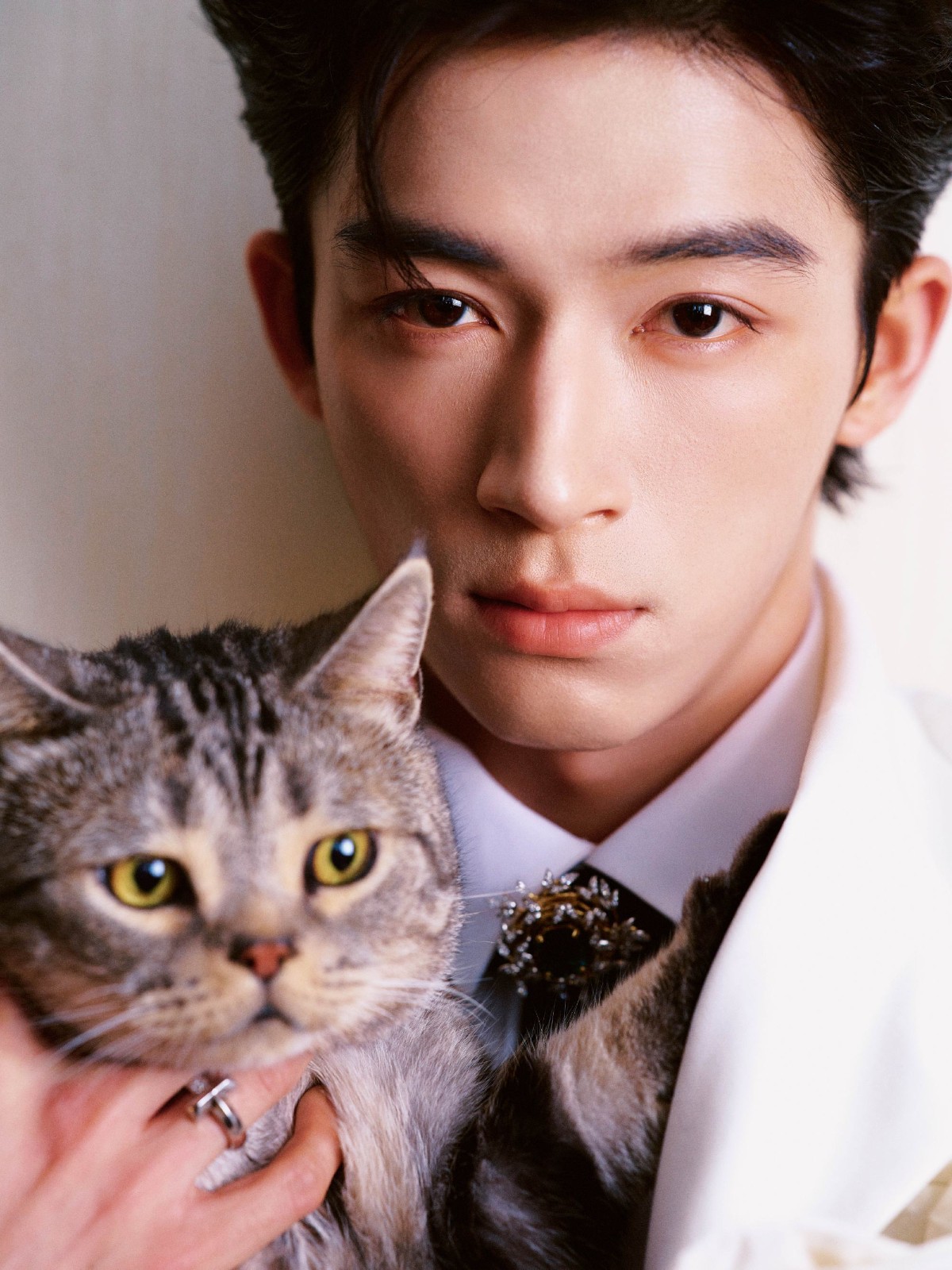 檀健次则是矛盾美学的骨相代表,硬朗下颌线如刀刻般清晰,却搭配着自带柔感的“小狗眼”,寸头造型也难掩港风氛围。作为从男团主舞转型的演员,他的骨相自带动态优势,面部轮廓紧致不垮,让《猎罪图鉴》中的沈翊既有天才画家的温润,又有探案时的锐利。这种“刚柔并济”的骨相适配度极高,红衣官服的文质彬彬与现代装的禁欲感都能轻松驾驭,堪称“剧抛脸”的颜值根基。